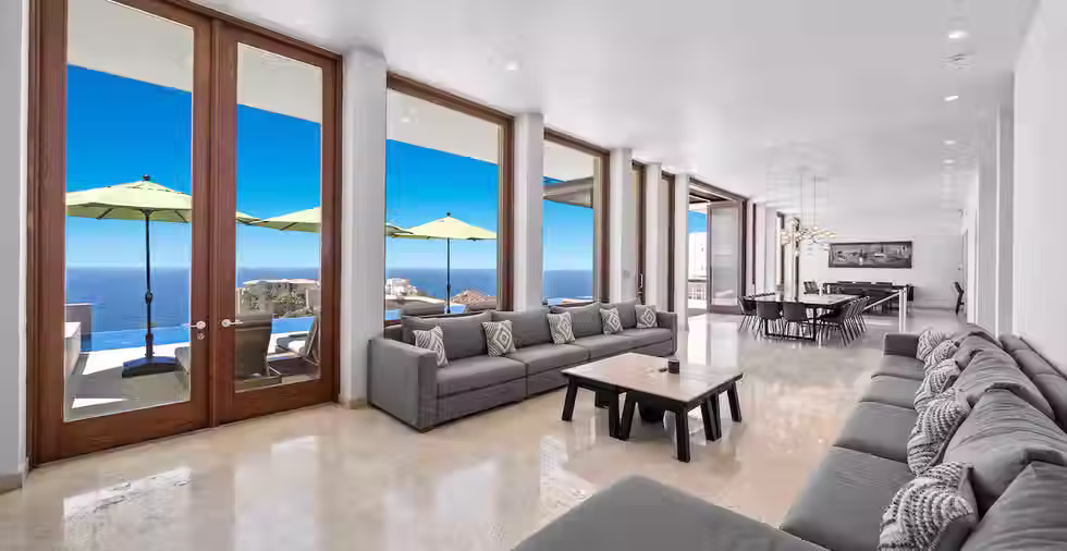 Carved into the mountain at one of the highest elevations in prestigious Pedregal is SAVINA, a stunning, contemporary Villa that offers unparalleled style and design over its 5 levels of luxury living. The 80’ cobalt infinity pool, hot tub and firepits.